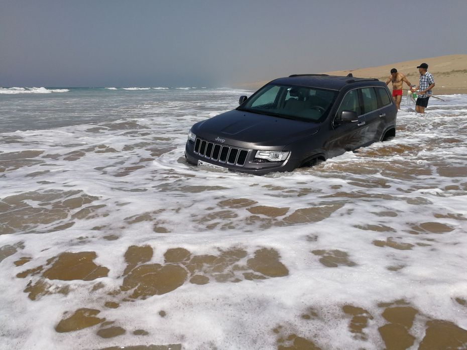 Me voilà seul, entrain de regarder ma Jeep Grand Cherokee s’enfoncer lentement, aspirée par le sable.